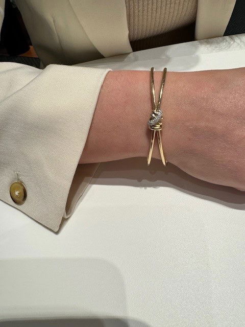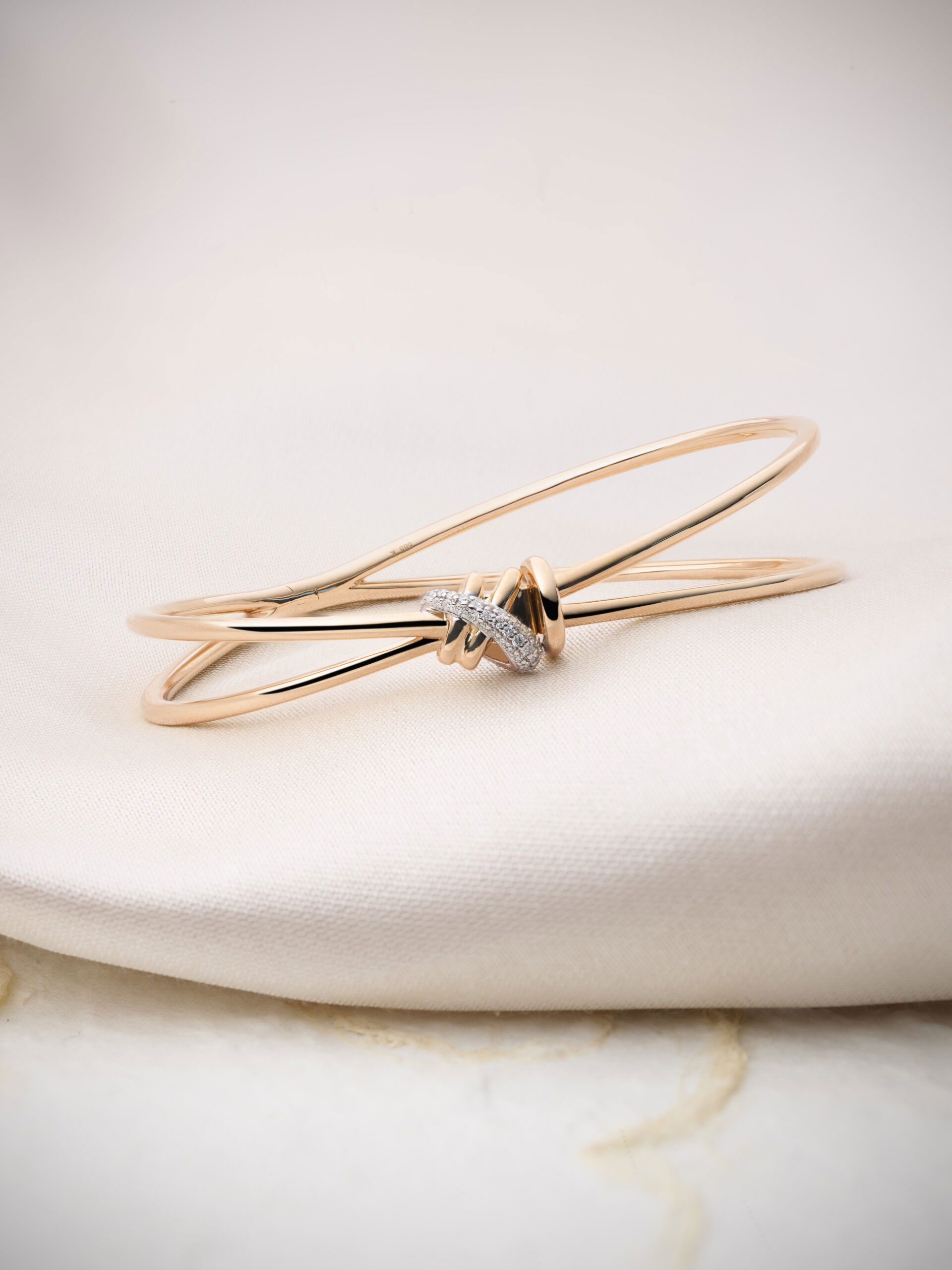 Tijdloze moderne elegantie; deze Candy Xpression armband is een prachtig juweel om iedere damespols. Gemaakt van twee massief gouden banen die in het midden samen komen met een rondelle in een vernieuwde stijl. Deze armband is gemaakt van 14 karaats roségoud. De nieuwe rondelle is een echt snoepje en gezet met 0.17ct briljant geslepen diamant in de kwaliteit TW/SI.
