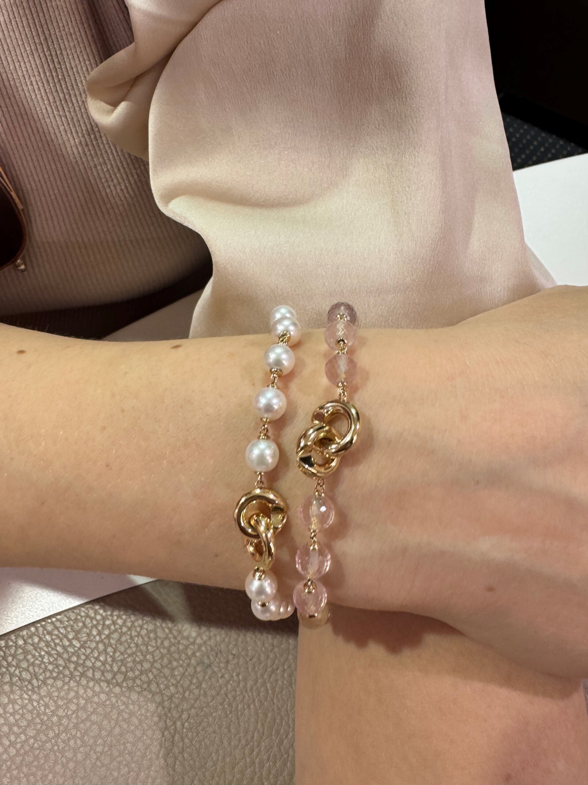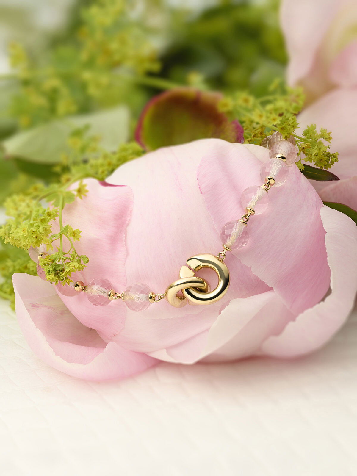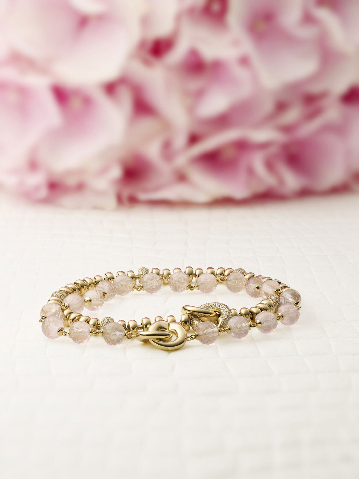 De Magic Xpression is een ode aan de schoonmoeder van Katinka. Deze lijn is geïnspireerd op een collier dat zij droeg. De twee ronde elementen van het roségouden slot zijn oneven qua grootte en vallen op een magische manier in elkaar. Deze moderne armband bestaat uit 19 roze kwarts edelstenen die door roségoud goud geschakeld worden en is een variant op de "klassieke" Magic Xpression. De tijdloze elegantie van dit prachtige juweel symboliseert de magie, de band en de aantrekkingskracht tussen twee mensen. Vragen? Neem contact met ons op en we helpen u graag.
