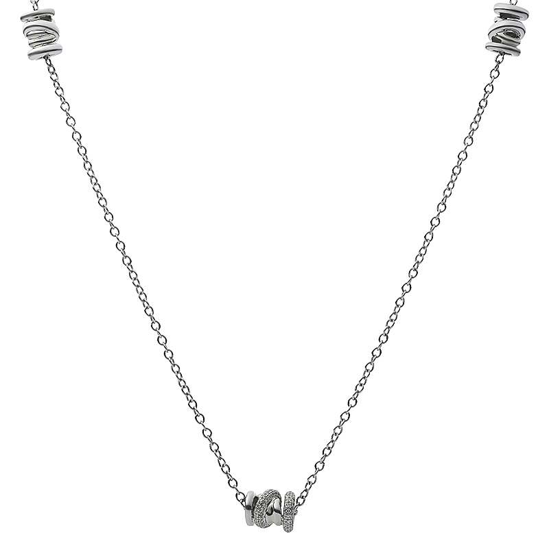 Een Chanel collier kon niet ontbreken binnen de collectie. Het is namelijk de favoriet van Katinka zelf! Dit volledig witgouden collier kan op twee lengtes besteld worden; op 90cm of op 110cm. Het collier van 90cm heeft vijf rondellen waarvan drie gezet zijn met diamant. Het collier van 110cm heeft zeven rondellen waarvan er drie gezet zijn met diamant. Beide lengtes zijn gezet met 1,33ct brilant geslepen diamant TW/SI.