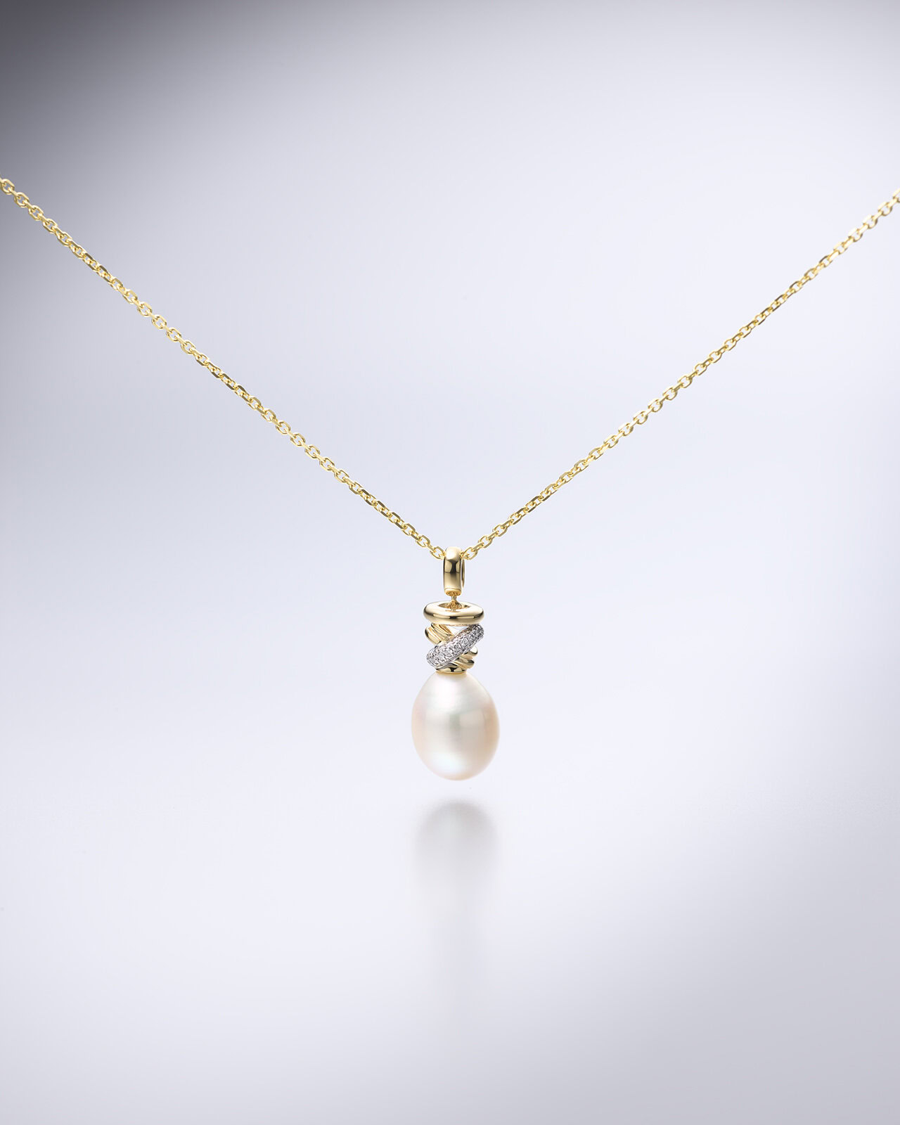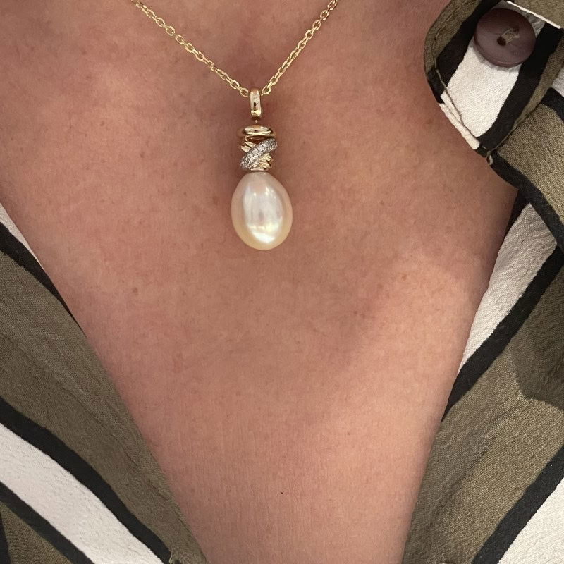 Dit elegante geslepen ankercollier met barok parel heeft een sierlijke toevoeging van de kenmerkende Berretty rondelle. De rondelle is gezet met 0,20ct flonkerende briljant geslepen diamanten in het witgoud. Kwaliteit TW/SI. Dit sieraad is te dragen op 42cm en 45cm door middel van tussenoogjes in het collier. Ook mogelijk in roségoud en witgoud. Neem contact met ons op voor meer informatie.