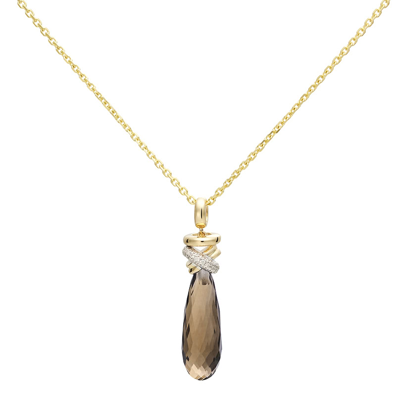 Dit elegante geslepen ankercollier met facet geslepen Smokey Quartz heeft een sierlijke toevoeging van de kenmerkende Berretty rondelle. De rondelle is gezet met 0,19ct flonkerende briljant geslepen diamanten in het witgoud. Kwaliteit TW/SI. Dit sieraad is te dragen op 42cm en 45cm door middel van tussenoogjes in het collier. Ook mogelijk in roségoud en witgoud. Neem contact met ons op voor meer informatie.