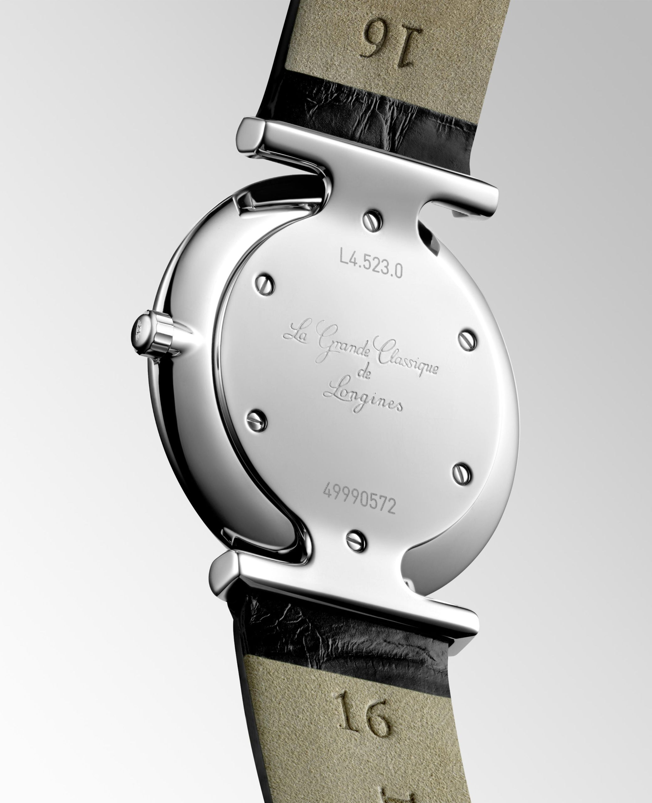 De Longines La Grande Classique L4.512.4.87.6 is een tijdloos en ultradun dameshorloge met een klassieke allure. Het Zwitserse quartz uurwerk drijft uur en minuut aan, omgeven door een 29 mm roestvrijstalen kast van slechts 4,5 mm dik, met krasbestendig saffierglas. De witte parelmoeren wijzerplaat is verfraaid met 12 Top Wesselton VS‑SI diamanten, terwijl een elegante stalen schakelband met drievoudige vouwsluiting het geheel compleet maakt. Waterdicht tot 3 bar.