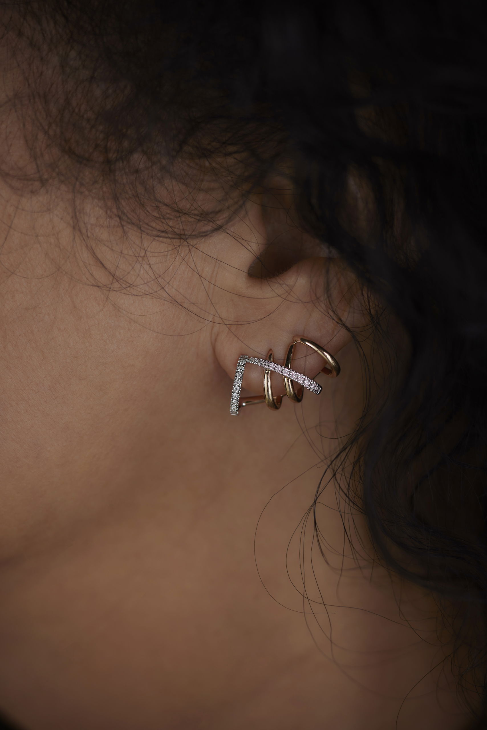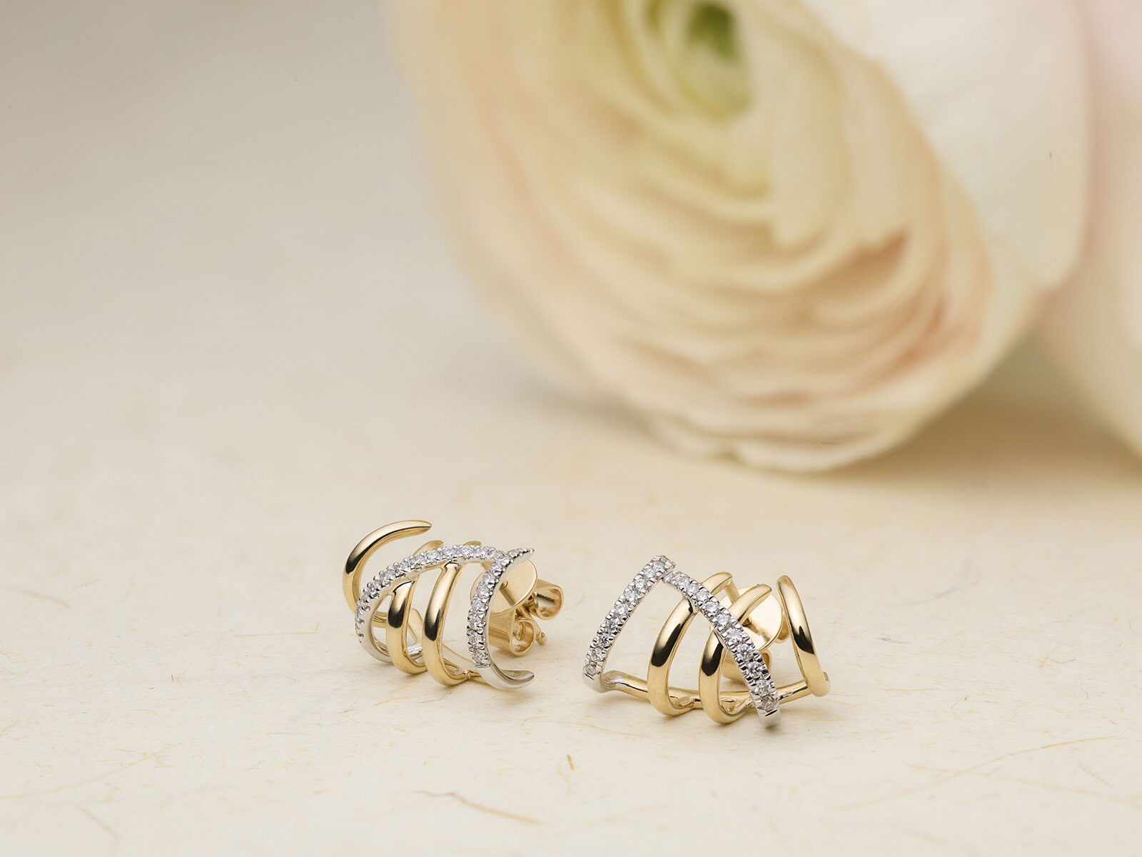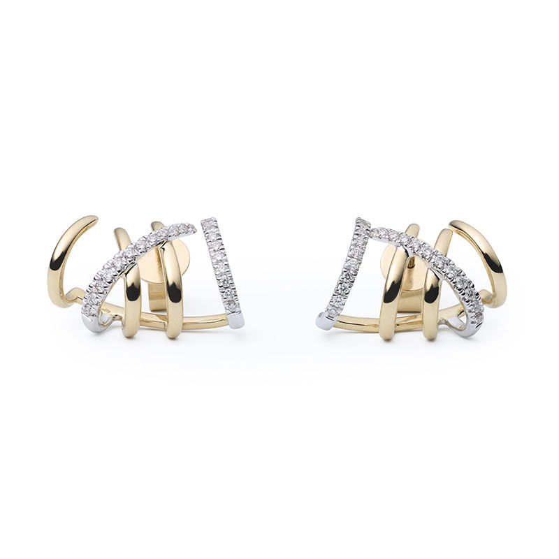 Tijdloos en modern; deze Illusion Xpression oorringen lijken uit vijf losse oorringen te bestaan, maar hebben maar één oorsteker. Je hebt dus maar één oorgaatje nodig met het effect van vijf losse oorringen. Prachtig en elegant in ieder oor. Twee van de ringen zijn gezet met een totaalgewicht van 0.25ct briljant geslepen diamant (TW/SI). Ook mogelijk in roségoud en witgoud. Neem contact met ons op.