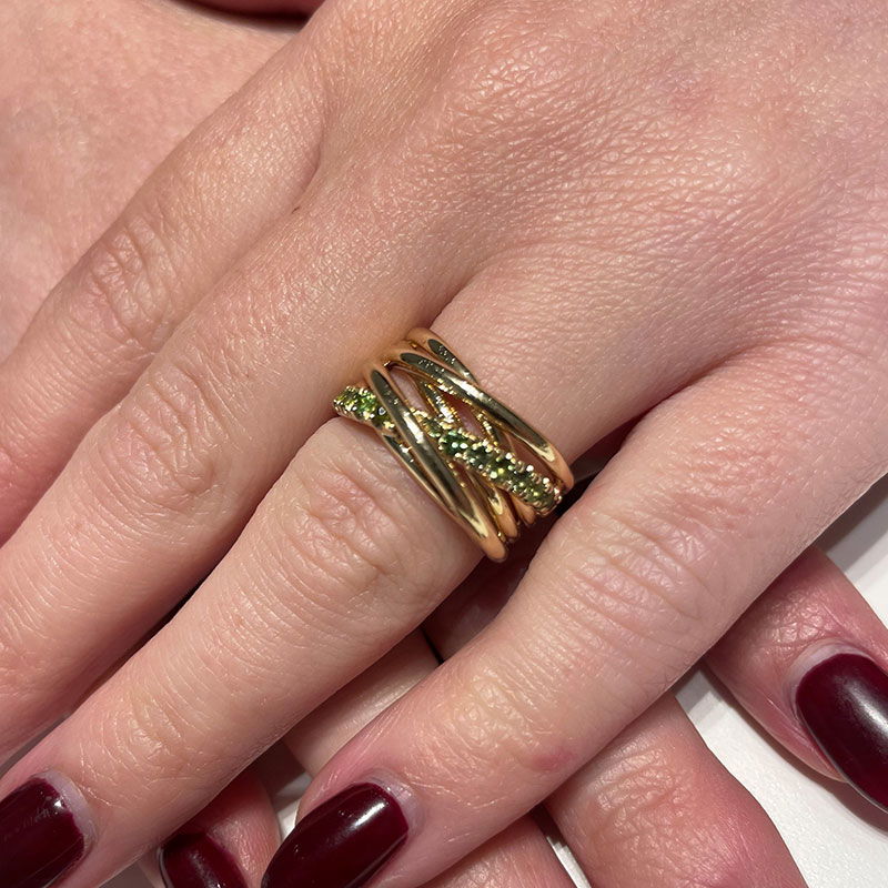 Elegant XpressionDe Elegant Xpression Green Tourmaline is sierlijk, verfijnd én met een toevoeging van edelstenen. Deze geelgouden ring is gezet met 0.47ct fonkelende groene tourmalines. Elegant met een sprankelende touch.
