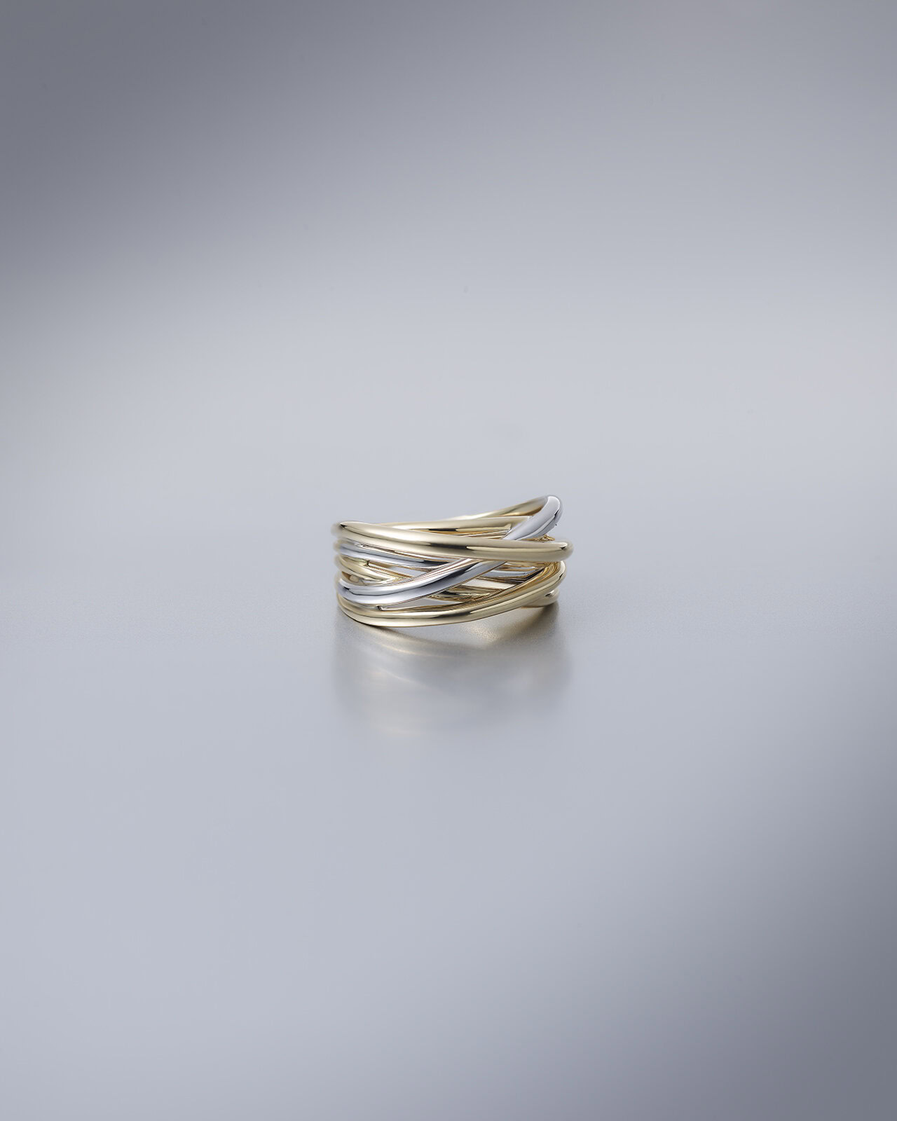 De Just Elegant Xpression is sierlijk en verfijnd, maar wel massief. Elegant en casual tegelijk. De ring is overwegend geelgoud met enkele witgouden banen.