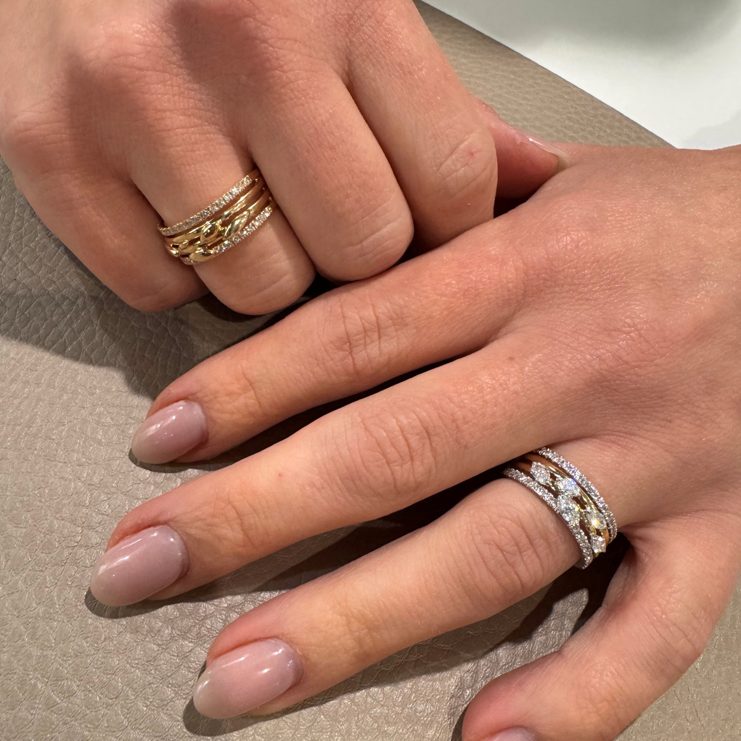 Prachtige sierlijke ring met 5 witgouden pavé diamant bezette blaadjes die symbool staan voor Katinka haar 5 jarig jubileum. Een wit- met geelgouden ring. Het diamant is in het witgoud gezet met in totaal 0.55ct briljant geslepen diamant TW/SI