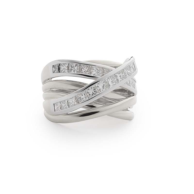 Princess XpressionDe naam Princess past letterlijk en figuurlijk perfect bij deze schitterende ring met haar 24 Princess geslepen flonkerende diamanten met een totaal gewicht van 2,12ct. Kwaliteit TW/SI. Ze is met recht het paradepaardje uit de Xpression lijn. Deze ring is volledig witgoud.