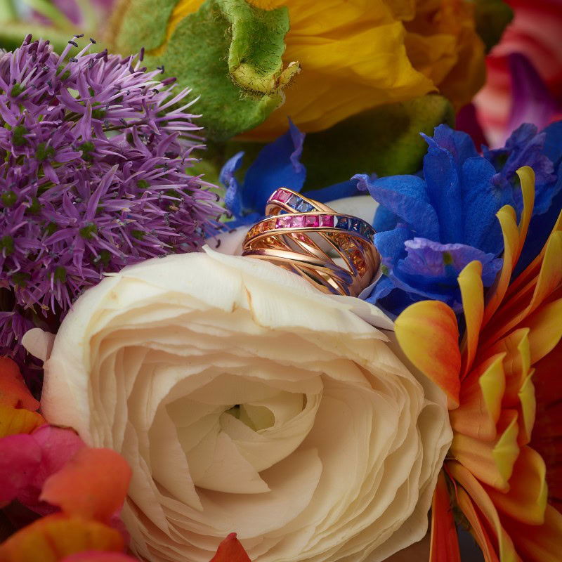 Color XpressionDe Rainbow staat voor 'na regen komt zonneschijn'. Het geeft vrolijkheid en is een teken van vrijheid en vrede. Een perfect sieraad om cadeau te geven of om jezelf eraan te herinneren dat je sterker bent dan je denkt en alles overwint. De ring is gezet met kleurrijke Princess geslepen saffieren en rode robijnen.