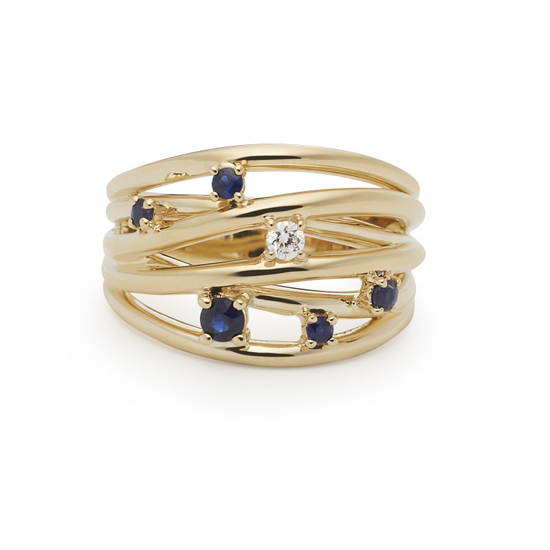 StarDe Star in het geelgoud met blauwe saffieren is een vrouwelijke- en stijlvolle ring. Er zijn vijf koninklijke blauwe saffieren gezet tussen de banen van de ring én een fonkelende diamant van 0.07ct TW/SI. De diamant in deze ring kunnen staat voor het lichtpuntje in jouw leven in het heden of het verleden. Dat kan iemand zijn die je dierbaar is of iets waar je trots op bent. Er kunnen ook meerdere "stars" verwerkt worden in de ring. Zo kunnen de diamanten bijvoorbeeld symbool staan voor je kinderen. Your star, your point of light!
