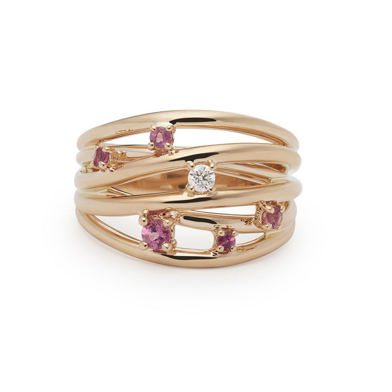 Star ring roségoud roze tourmaline