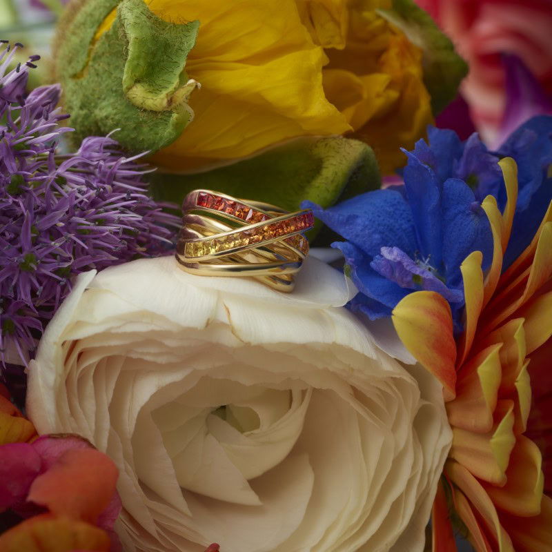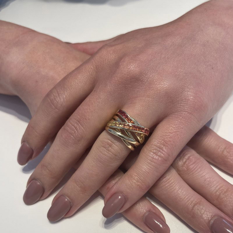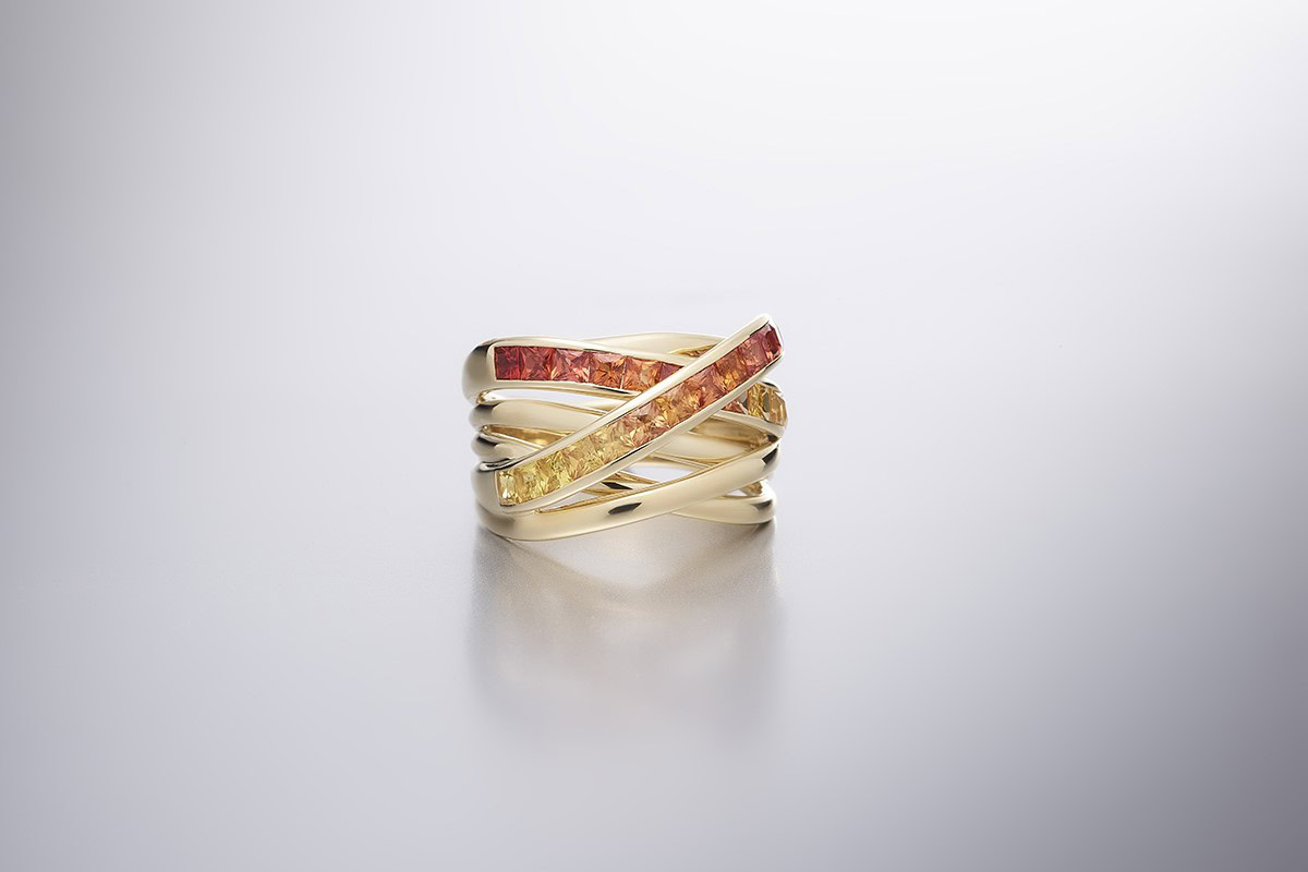 Color XpressionWie wordt er nou niet blij van de zon? Het liefst zien we hem iedere dag. Met de Sunshine-ring draag je de zon altijd bij je, ook op donkere dagen. Deze ring is bezet met Princess geslepen saffieren met kleurovergang van lichtgeel naar geel/oranje.