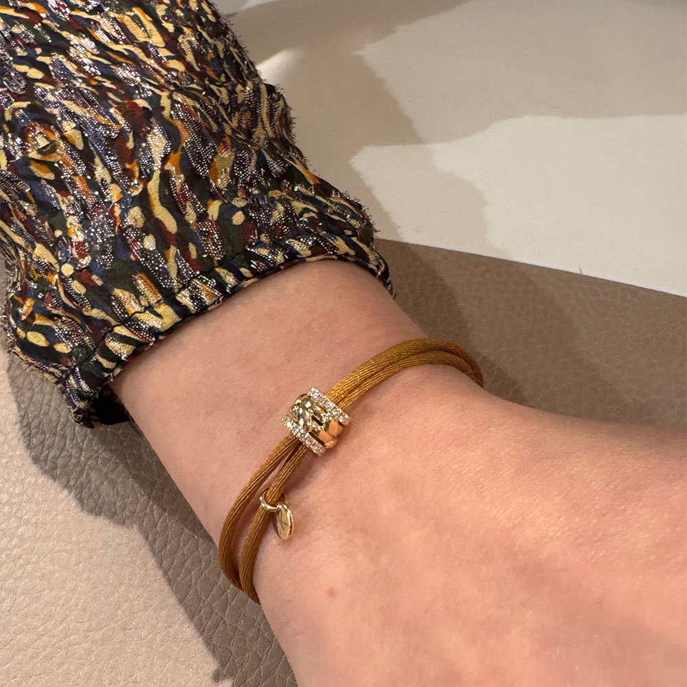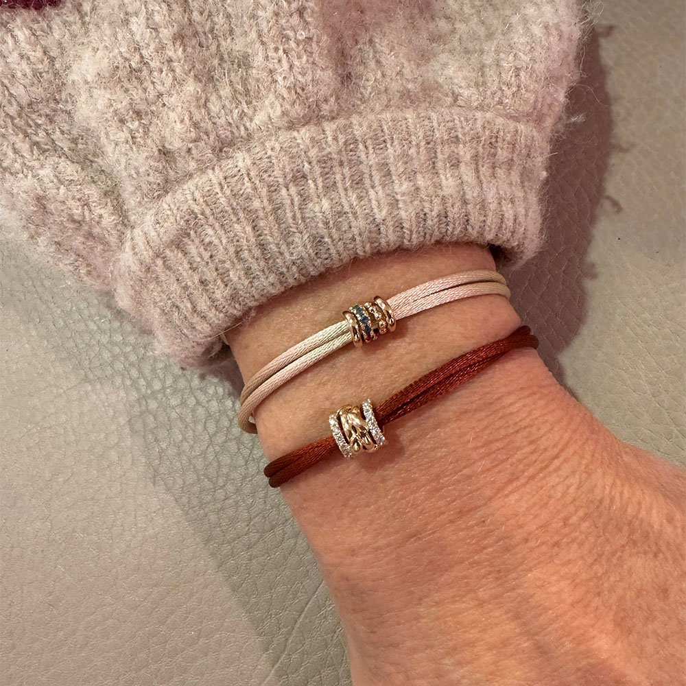 De Berretty rondelle mocht niet ontbreken in de Lustrum collectie. Deze rondelle is namelijk kenmerkend in de collectie van Katinka. Met 5 geelgouden blaadjes die symbool staan voor het 5 jarige jubileum van Katinka Berretty Jewelry. Op een satijnen koord met een kleur naar keuze of mooi aan een gouden collier. Met zijbanen bezet met 0.34ct TW/SI flonkerende briljant geslepen diamanten.