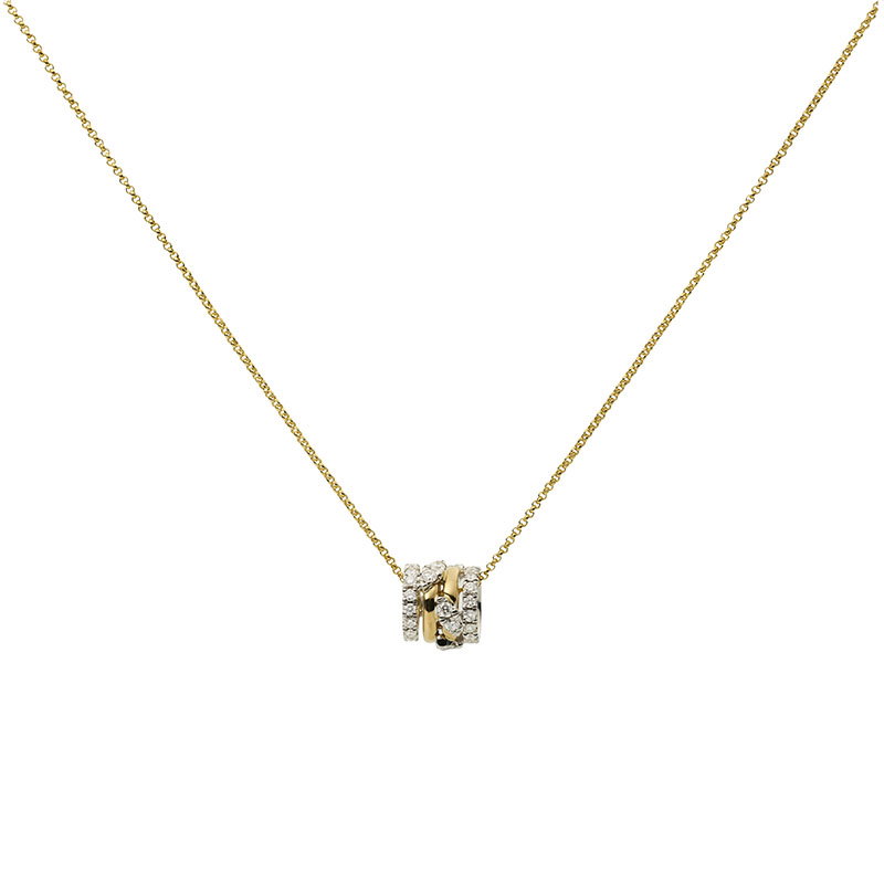 De Berretty rondelle mocht niet ontbreken in de Lustrum collectie. Deze rondelle is namelijk kenmerkend in de collectie van Katinka. Met 5 pavé gezette witgouden blaadjes die symbool staan voor het 5 jarige jubileum Katinka Berretty Jewelry. Met aan weerszijden witgouden banen bezet met briljant geslepen diamanten. Totaal gewicht is 0.65ct TW/SI. Hier gecombineerd met een collier, maar ook mooi aan een satijnen koord.