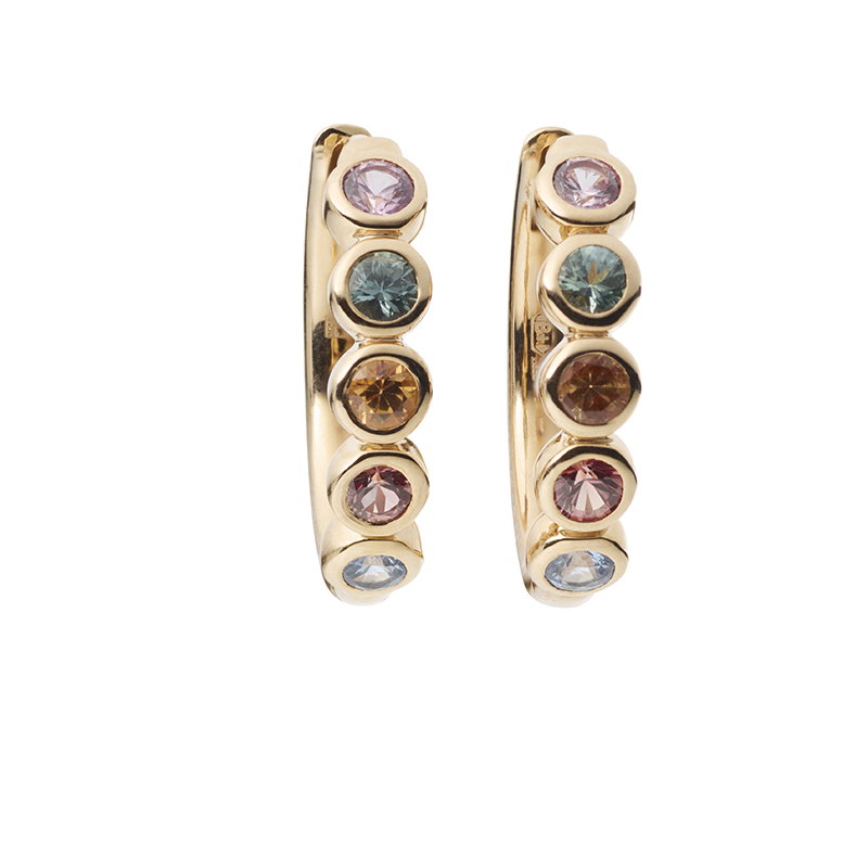 Deze exclusieve Jheronimus Bosch Confetti oorringen van Bron Jewelry zijn alleen te koop bij Juwelier Ton van Grinsven in Den Bosch. In samenwerking met Bron zijn deze creolen ontworpen. In 2016 stonden we in Den Bosch stil bij de 500ste sterfdag van kunstschilder Jheronimus Bosch. De kleurrijke saffieren in deze oorsieranden zijn geïnspireerd op zijn beroemde drieluik De Hooiwagen. Gemaakt van 18 karaats roségoud. Ook verkrijgbaar in geel- en witgoud. Neem contact met ons op voor de mogelijkheden.