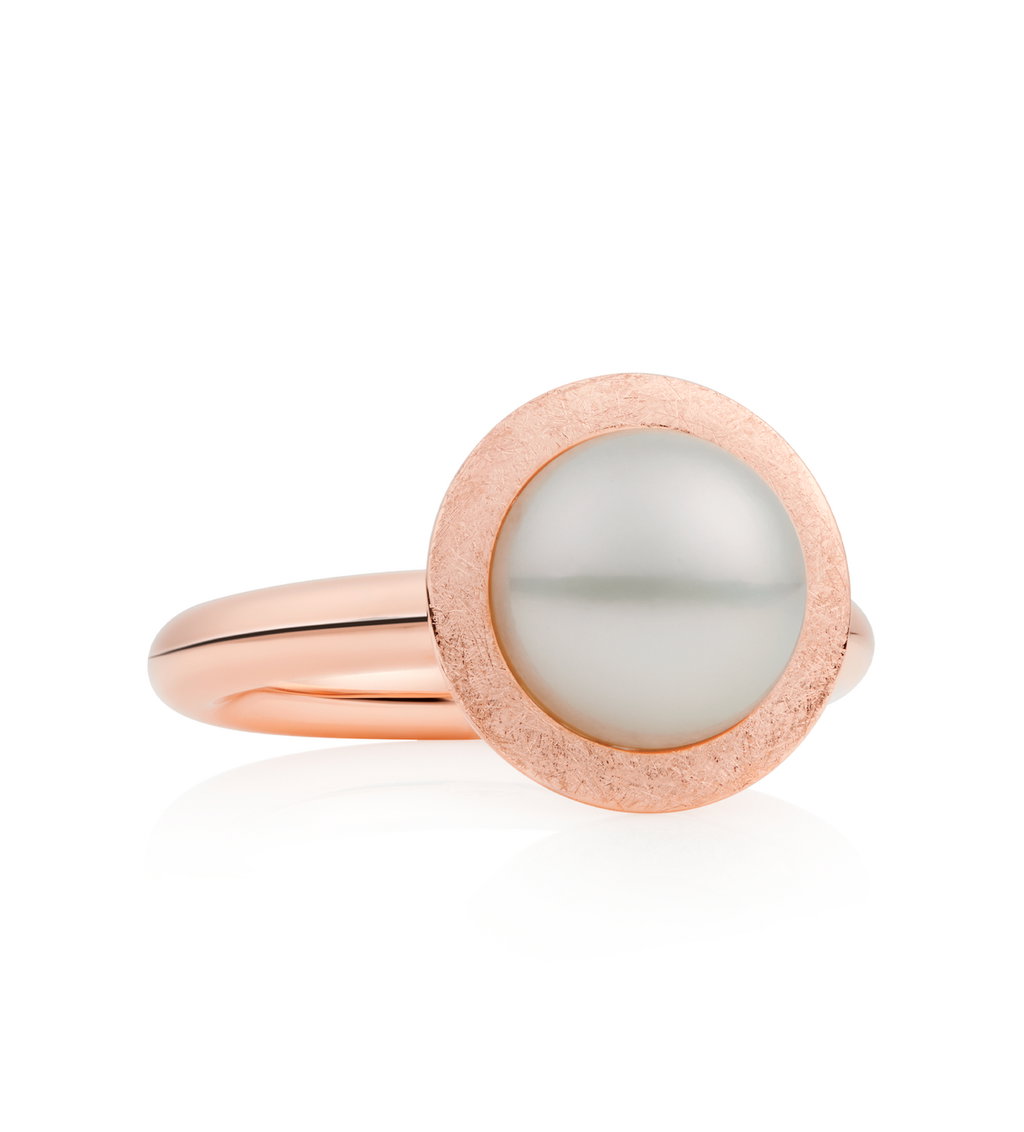 Deze Sushi ring van Bron is voorzien van een witte Zuidzeeparel van 10mm. De parel wordt stevig vastgehouden door dit Sushi ringmontuur. De rand om de parel is gesatineerd. De ring is gemaakt van 18 karaats roségoud, maar is ook mogelijk in wit- en geelgoud. Neem contact met ons op voor de mogelijkheden.